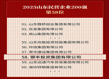 銀豐集團(tuán)再獲佳績(jī)!入圍2025山東民營(yíng)企業(yè)百強(qiáng)系列三大權(quán)威榜單